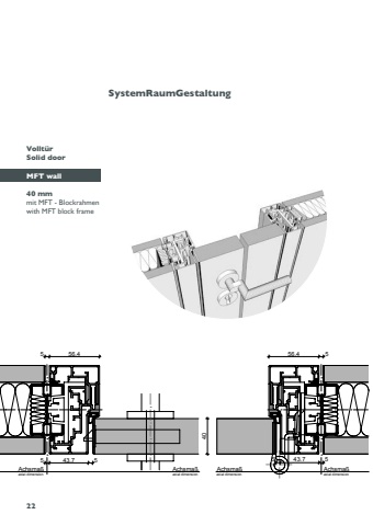 5 56.45 43.7 5Achsma%u00df Achsma%u00df5 43.7 556.4 5Achsma%u00df Achsma%u00df40axial dimension axial dimension axial dimension axial dimensionSystemRaumGestaltung22Vollt%u00fcr Solid door MFT wall40 mm mit MFT - Blockrahmenwith MFT block frame
