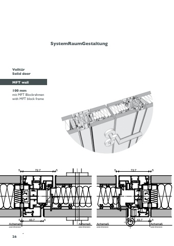 5 72.7 5 5 72.7 55 43.7 5 5 43.7 5Achsma%u00df Achsma%u00df Achsma%u00df Achsma%u00dfaxial dimension axial dimension axial dimension axial dimensionSystemRaumGestaltung26Vollt%u00fcr Solid doorMFT wall100 mmmit MFT Blockrahmenwith MFT block frame