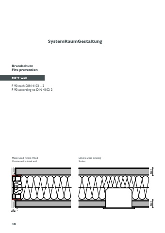 518.5 18.5+5-3SystemRaumGestaltung30BrandschutzFire preventionMFT wallF 90 nach DIN 4102 %u2013 2F 90 according to DIN 4102-2Elektro-Dose einseitig SocketMassivwand +intek-WandMassive wall + intek wall