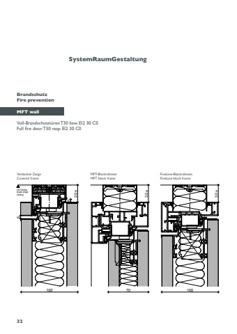 100 70 100 30 %u00b1 30 %u00b1 30 %u00b155UK Deckelower edgeceilingSystemRaumGestaltung32BrandschutzFire preventionMFT wallVoll-Brandschutzt%u00fcren T30 bzw. EI2 30 C0Full fire door T30 resp. EI2 30 C0Verdeckte Zarge Covered frameFineLine-Blockrahmen FineLine block frameMFT-Blockrahmen MFT block frame